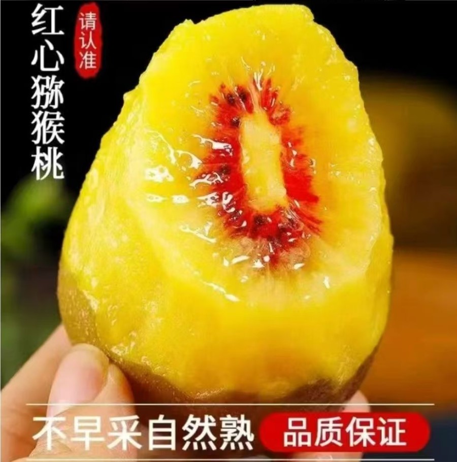 中华红心类,1997年育成,是世界第一个红肉猕猴桃品种,沿果心呈放射状红色条纹,汁多味甜,可溶性固形物19.6%,总糖13.45%,总酸0.49%,维生素C 135.77mg/100g,耐贮性强,可贮至翌年2月。